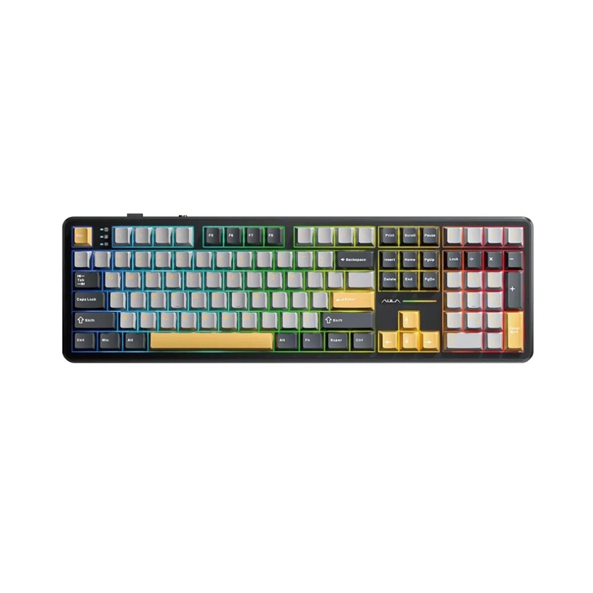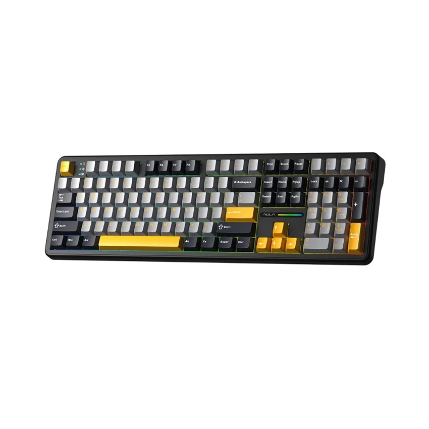 Bàn phím cơ AULA F108 - 3 Mode (Phiên bản Đen+ Xám + Vàng/ Volcano switch)